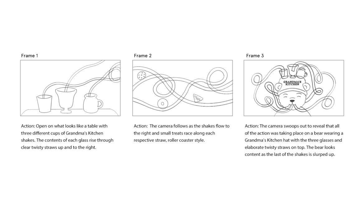 I made this style frame set and animation for a shake company called Grandma’s Kitchen. I aimed to make a playful, approachable style with bounding treats and an endearing character design. The biggest challenge for the animation was getting the timing just right, which took some trial and error!