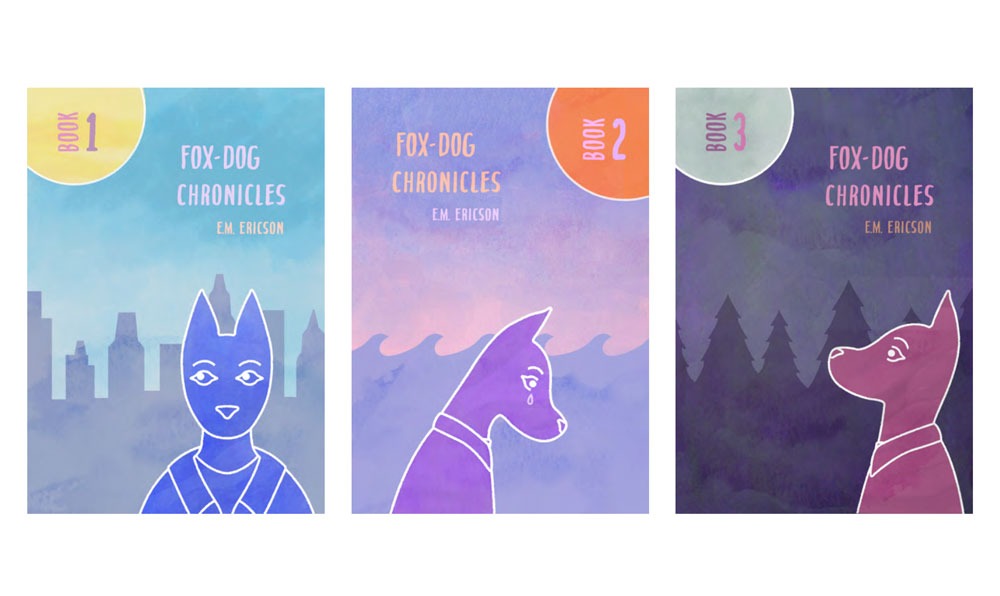 As a personal project I created dreamlike illustrations and designs for three covers of a graphic novel series about a fox-dog who doesn’t quite fit in.