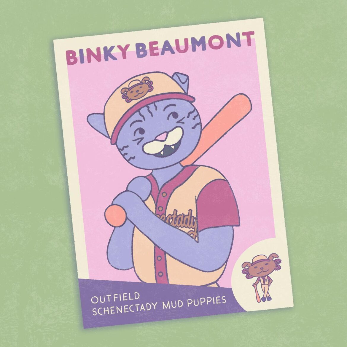 These designs were inspired by vintage baseball cards from the ’50s through the ’80s for an appealing retro look. It was a lot of fun not just creating the characters and layouts but also making up some offbeat mascots!
